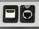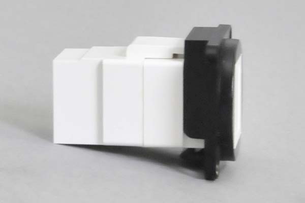 ※以下のスナップイン中継コネクタはパネル表面から取り付ける場合、本体幅が広いためにパネルカット寸法(17.15㎜)を通せず、取り付けることができません。本ベゼルのみを先に取付け、後にスナップインコネクタを嵌め込む必要があります。
