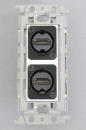 | ※写真のコンセントモジュールは代表モデルです。 | 絶縁取付枠とコンセントモジュールの取付例です。 (写真は代表例) |