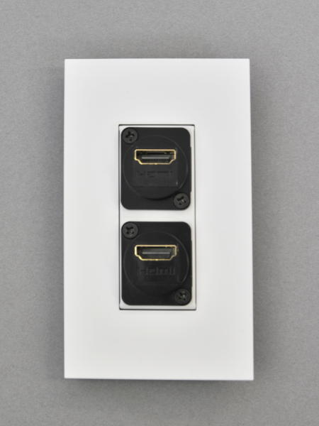 ●専用プレート本体にノイトリック社のDLXシリーズにサイズを合わせたパネルマウントタイプのHDMI端子PMNST-HDMI-BKを2つ組み込んだ商品です。