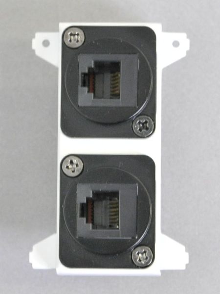 絶縁コンセント取付枠用 コンセントモジュール モジュラージャック RJ12メス-メス 2口(ノイトリックスタイルコネクタ付き)