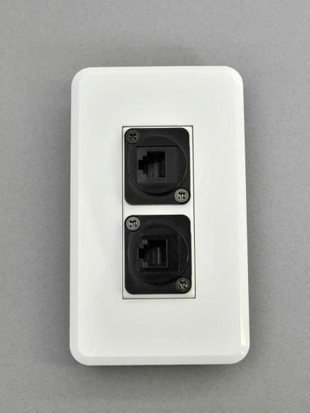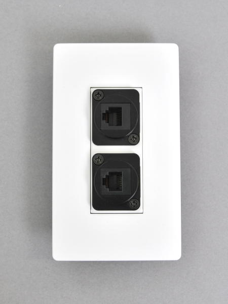●専用プレート本体にノイトリック社のDLXシリーズにサイズを合わせたパネルマウントタイプのRJ12規格コネクタ端子(両側メス)PMNST-RJ12-BKを2つ組み込んだ商品です。