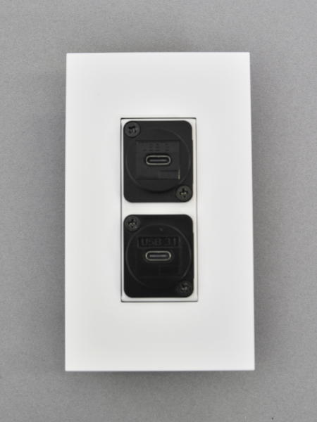 ●専用プレート本体にノイトリック社のDLXシリーズにサイズを合わせたパネルマウントタイプのUSB端子(USB3.1対応両側Type-C メス)PMNST-USB3C-BKを2つ組み込んだ商品です。