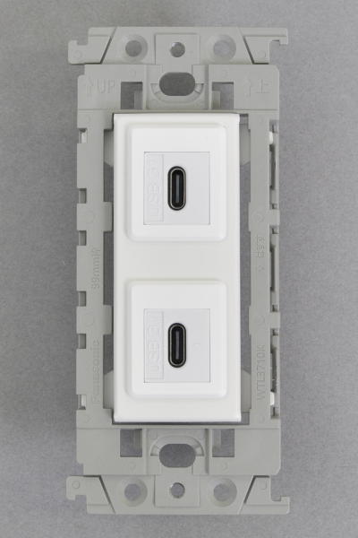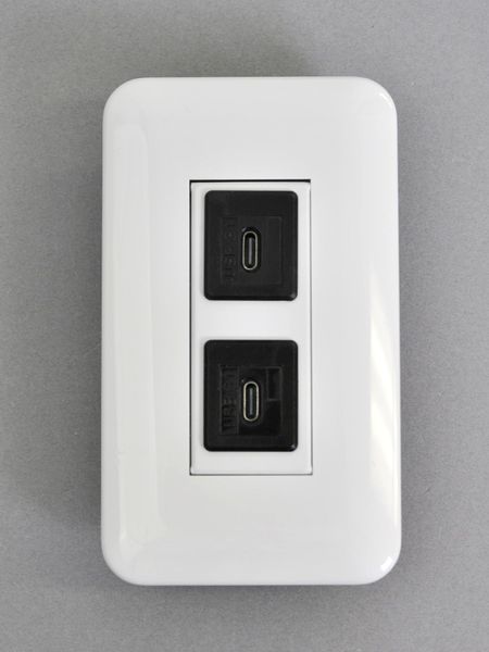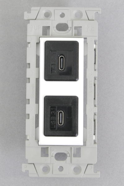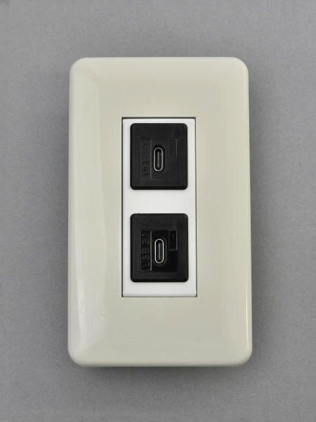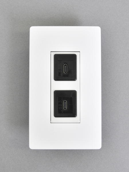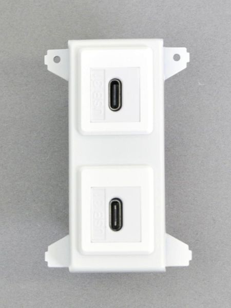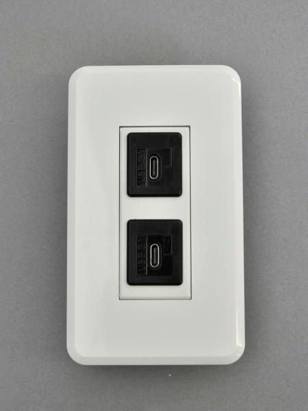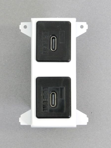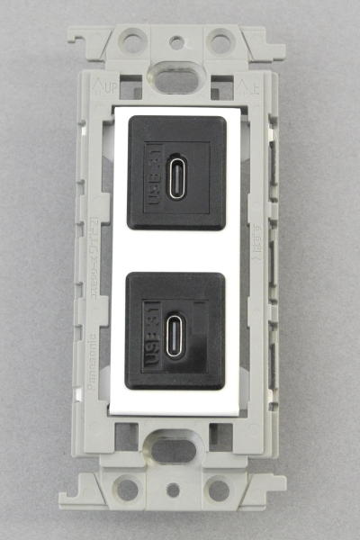 絶縁コンセント取付枠用 コンセントモジュール USB 3.1 Type-C メス-メス【USB3.1対応】 2口(スナップインコネクタ付き)