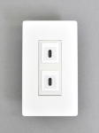 ●専用プレート本体にベゼルを介しスナップイン中継コネクタのSY-USB31-C-WH(ホワイト)または、SY-USB31-C-BK(ブラック)を2つ組み込んだコンセントモジュールです。