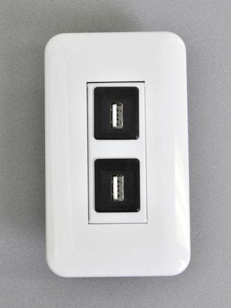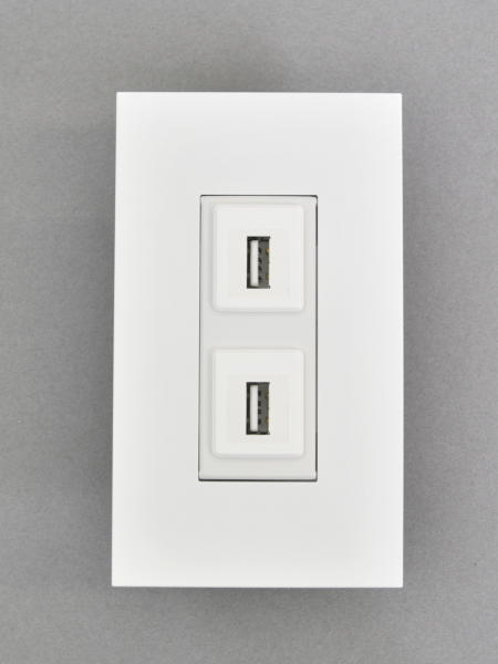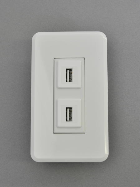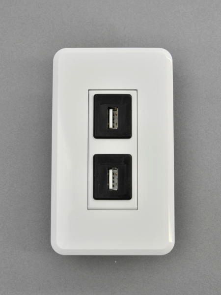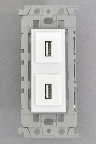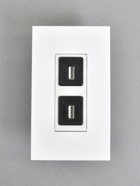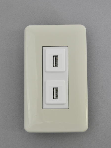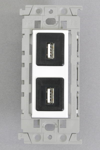 ●専用プレート本体にベゼルを介しスナップイン中継コネクタの210USB06N2WH(ホワイト)または、210USB06N2BK(ブラック)を2つ組み込んだコンセントモジュールです。
