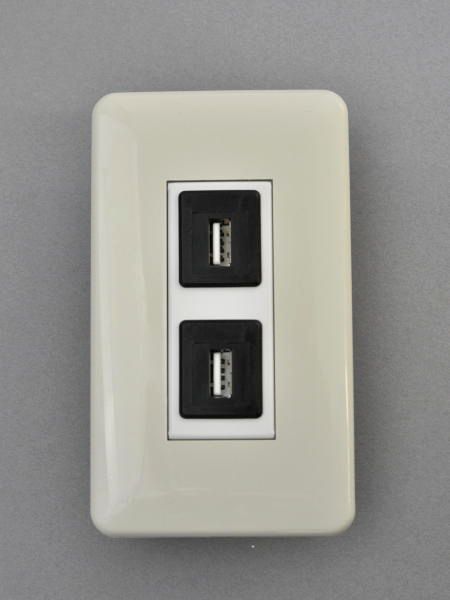 絶縁コンセント取付枠用 コンセントモジュール USB2.0 Aメス-Aメス 2口(スナップインコネクタ付き)