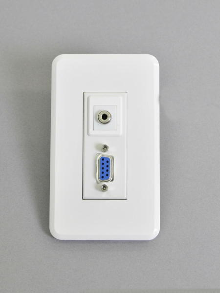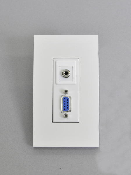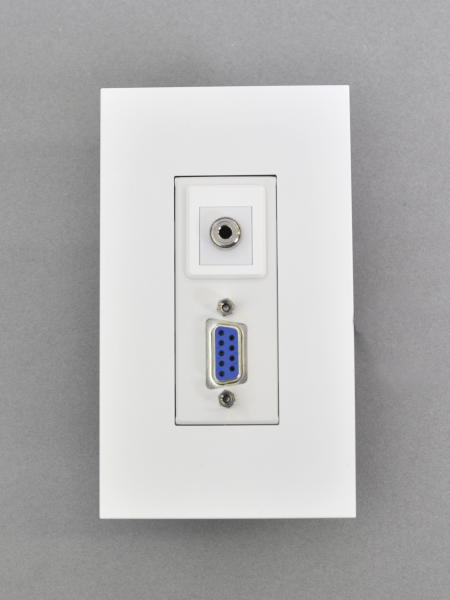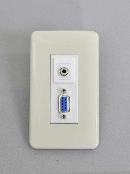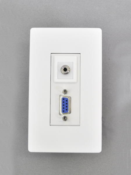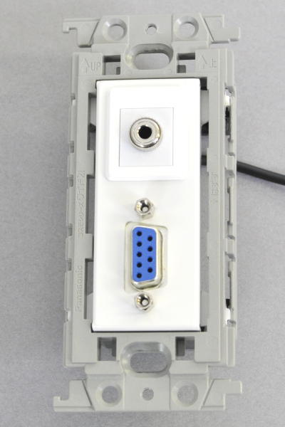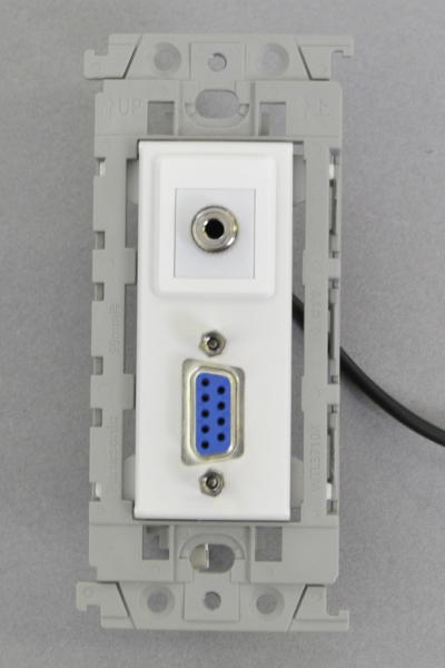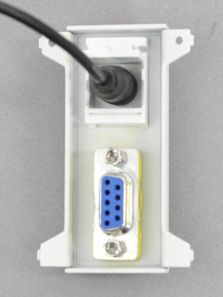 絶縁コンセント取付枠用 コンセントモジュール D-sub9ピン中継端子(メス-メス) と 3.5㎜ステレオミニ端子メスのスナップインケーブル 各1口付き