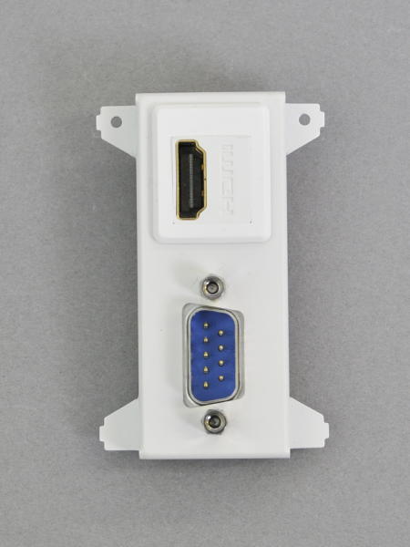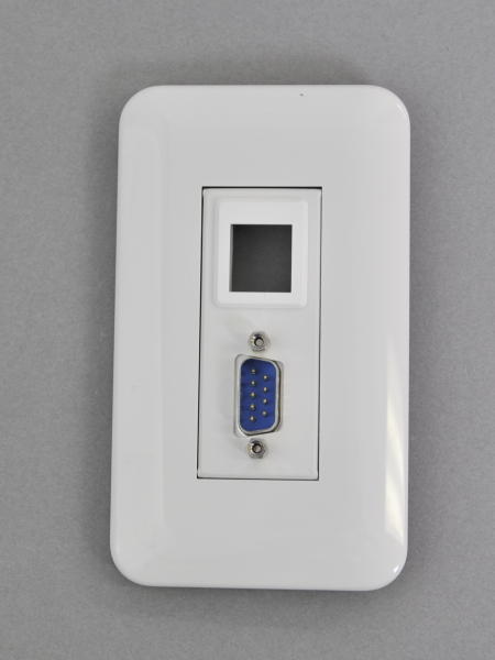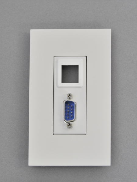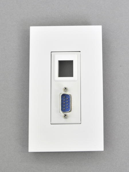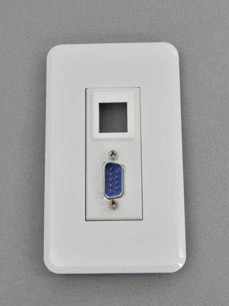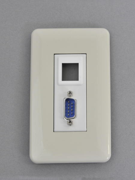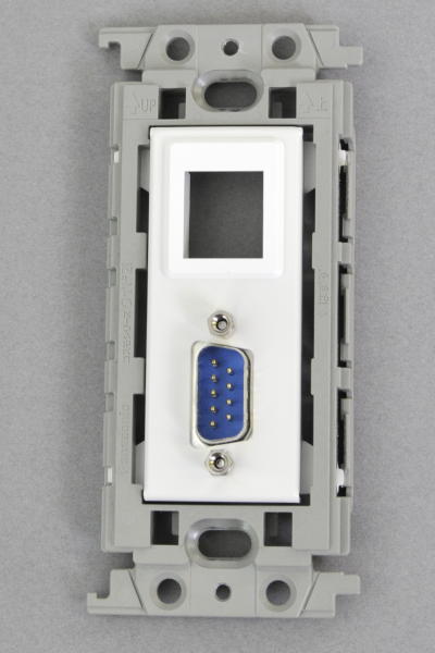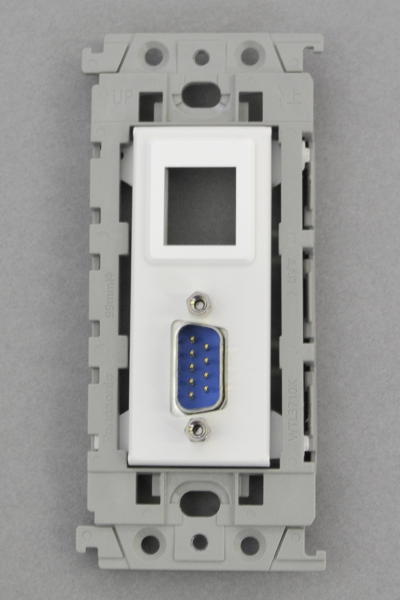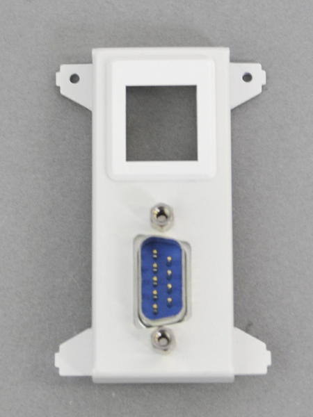●専用プレート本体にD-sub9ピン オスのコネクタを備え、スナップイン中継コネクタやスナップイン中継ケーブルを取り付けられるベゼルを1つ装着しております。