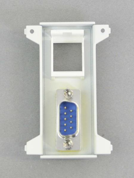 絶縁コンセント取付枠用 コンセントモジュール D-sub9ピン中継端子(オス-オス) と スナップインコネクタ用ブランク穴 各1口付き