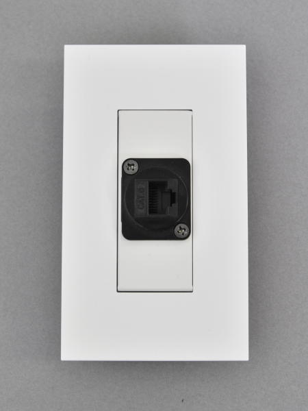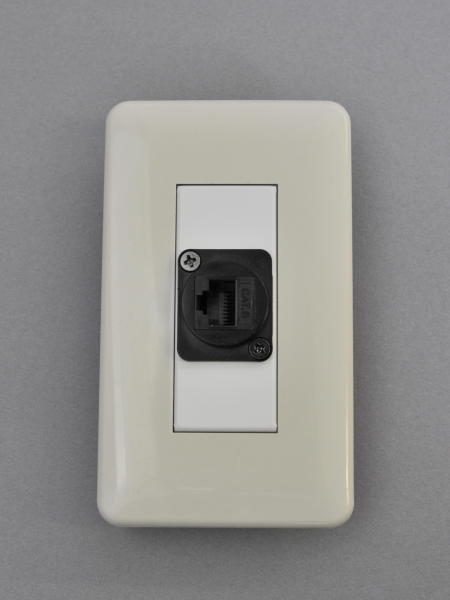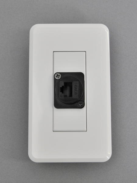 ●専用プレート本体にノイトリック社のDLXシリーズにサイズを合わせたパネルマウントタイプのLAN端子(CAT6対応、ストレート結線、両側メス)PMNST-C6-BKを組み込んだ商品です。