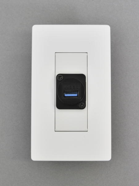 ●専用プレート本体にノイトリック社のDLXシリーズにサイズを合わせたパネルマウントタイプのUSB端子(USB3.0対応両側Aタイプ メス)PMNST-USB3A-BKを組み込んだ商品です。