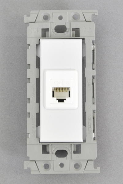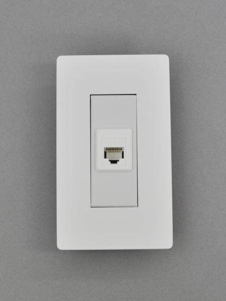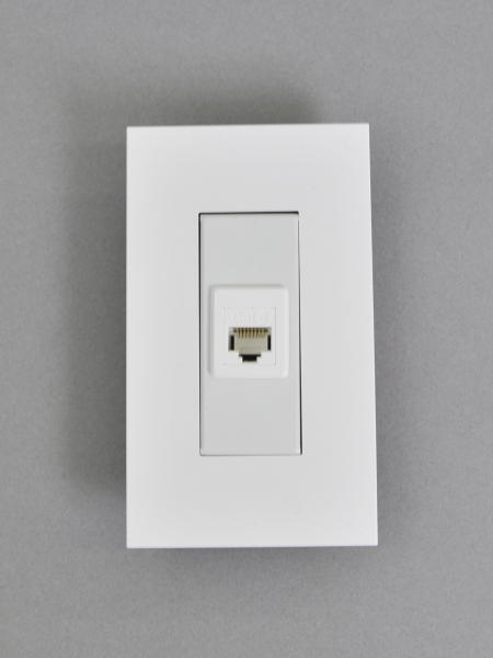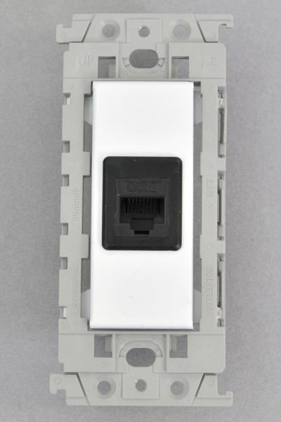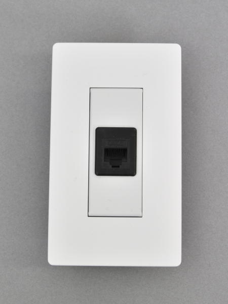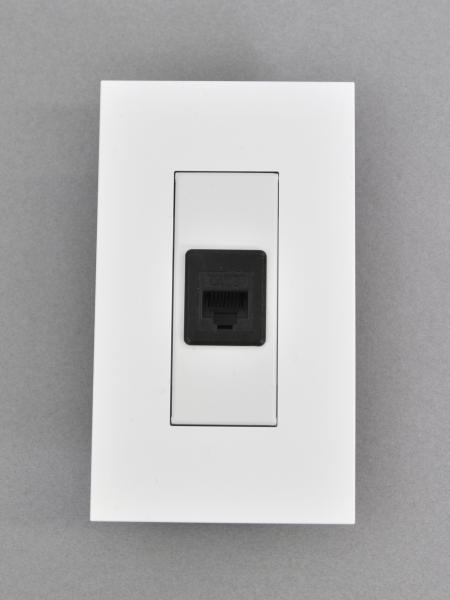 ●専用プレート本体にベゼルを介しスナップイン中継コネクタの3013AJIC6WH(ホワイト)または、FA-396-8-C6-BK(ブラック)を組み込んだコンセントモジュールです。