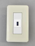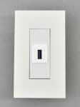 ●専用プレート本体にベゼルを介しスナップイン中継コネクタの210USB05N2WH(ホワイト)または、210USB05N2BK(ブラック)を組み込んだコンセントモジュールです。