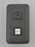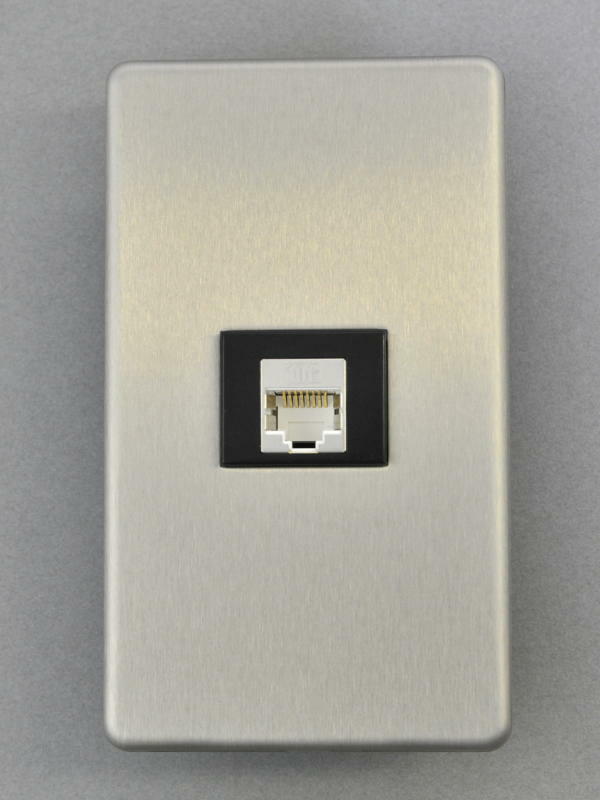 コンセントチップ(スナップインセット品) 【10Gbps伝送対応】、PoE++対応、 コンセント側:RJ-45(CAT6A STP)メス/壁内側:RJ-45(CAT6A STP)メス 横型 黒【構成部品変更予定】