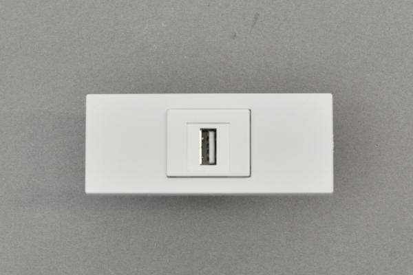 コンセントチップ(スナップインセット品) コンセント側:USB Aメス/壁内側:USB Aメス 縦型 背面アングル方向配線引き出しタイプ 白