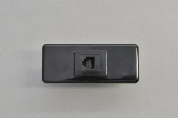 コンセントチップ(スナップインセット品) コンセント側:RJ-12メス/壁内側:RJ-12メス(両側6極6芯モジュラーコネクタのメス)、6極4芯RJ-11も適合 縦型 黒