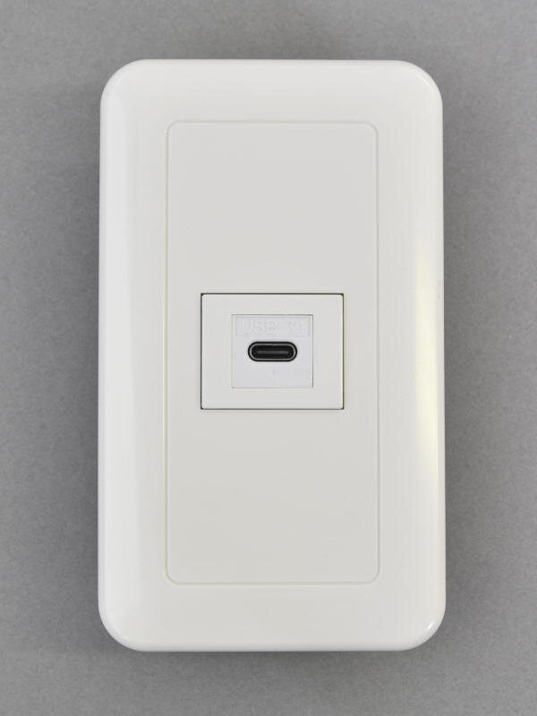 コンセントチップ(スナップインセット品) コンセント側:USB3.1-TypeCメス/壁内側:USB3.1-TypeCメス 【USB3.1対応】 横型 白