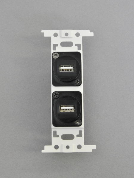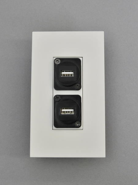 ●専用のモジュール枠にノイトリック社のDLXシリーズにサイズを合わせたパネルマウントタイプのUSB端子(USB2.0対応両側Aタイプ メス)PMNST-USBA-BKを2つ組み込んだ商品です。