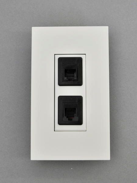 取付枠一体型 コンセントモジュール モジュラージャック RJ12メス-メス 2口(スナップインコネクタ付き)
