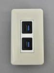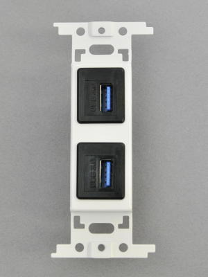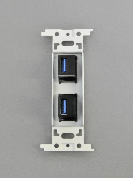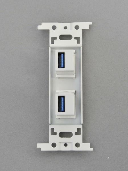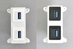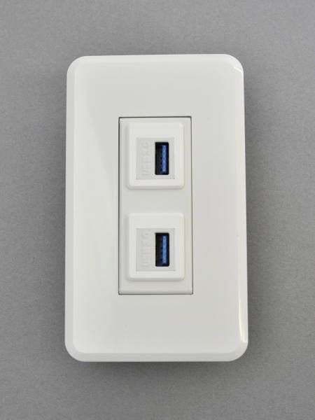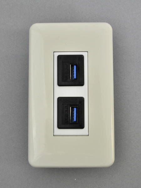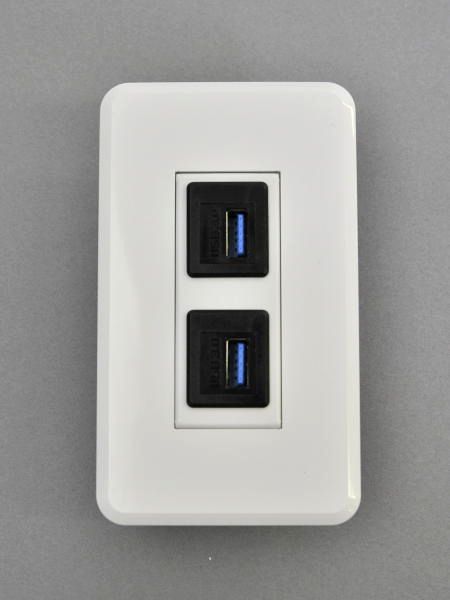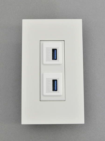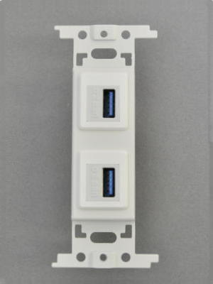 取付枠一体型 コンセントモジュール USB 3.0 Type-A メス-メス【USB3.0対応】ストレート結線タイプ 2口(スナップインコネクタ付き)