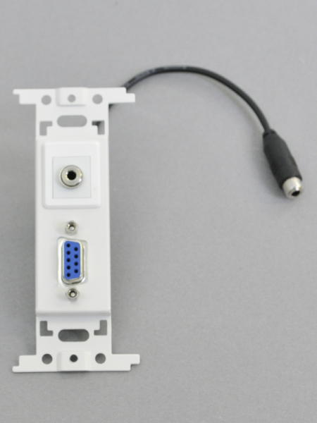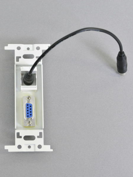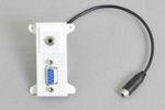 取付枠一体型 コンセントモジュール D-sub9ピン中継端子(メス-メス) と 3.5㎜ステレオミニ端子メスのスナップインケーブル 各1口付き