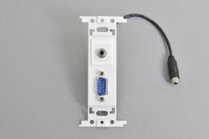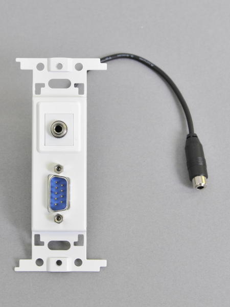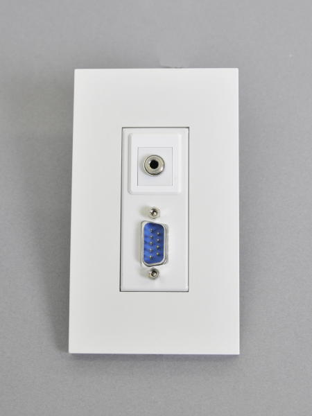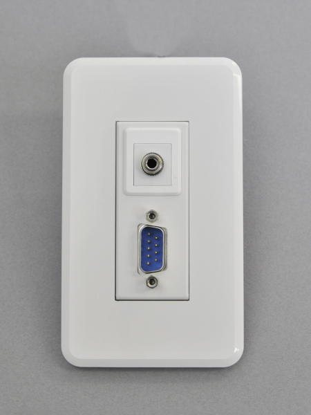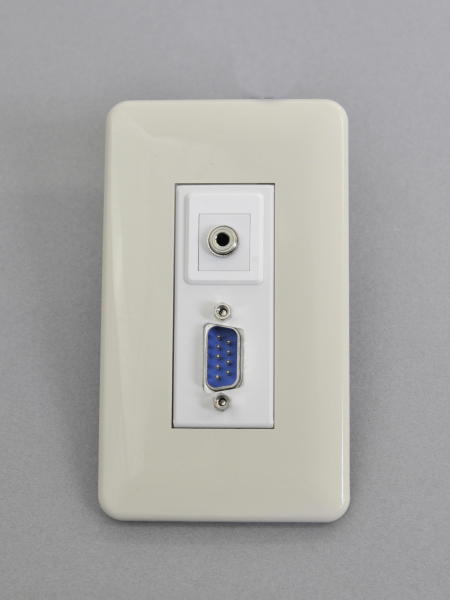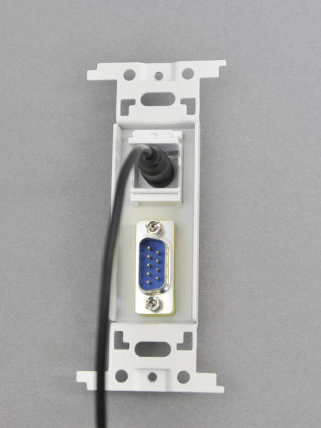 取付枠一体型 コンセントモジュール D-sub9ピン中継端子(オス-オス) と 3.5㎜ステレオミニ端子メスのスナップインケーブル 各1口付き