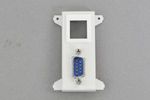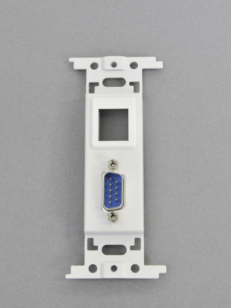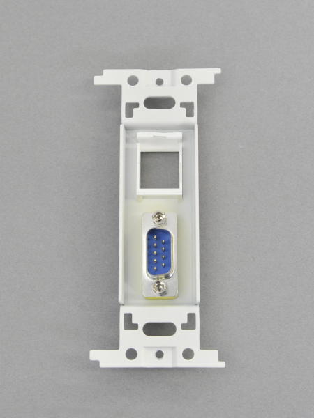 ●専用のモジュール枠にD-sub9ピン オスのコネクタを備え、スナップイン中継コネクタやスナップイン中継ケーブルを取り付けられるベゼルを1つ装着しております。