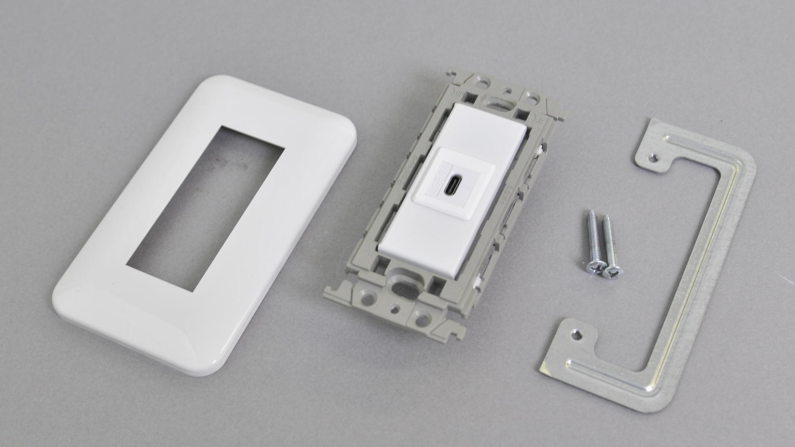 | 【セット内容】 コスモプレート 型番 WTF7003W 1個 絶縁取付枠用コンセントモジュール 型番 BTK-SIUSB3C-WH 1個 コスモ絶縁取付枠 型番 WTF3710K 1個 コの字型ハサミ金具 型番 WN39929 1個 |