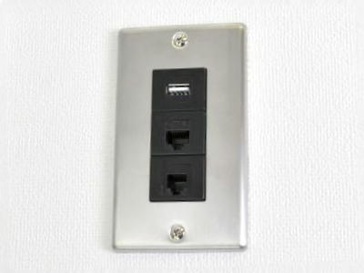 ●取付枠が1つ取り付けられる1連用のフェースプレートです(取付枠を取り付けた写真はこちら。)。取付枠に取付けるネジはフェースプレートについています。