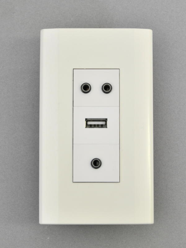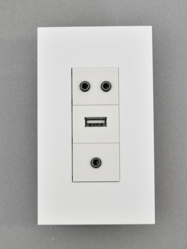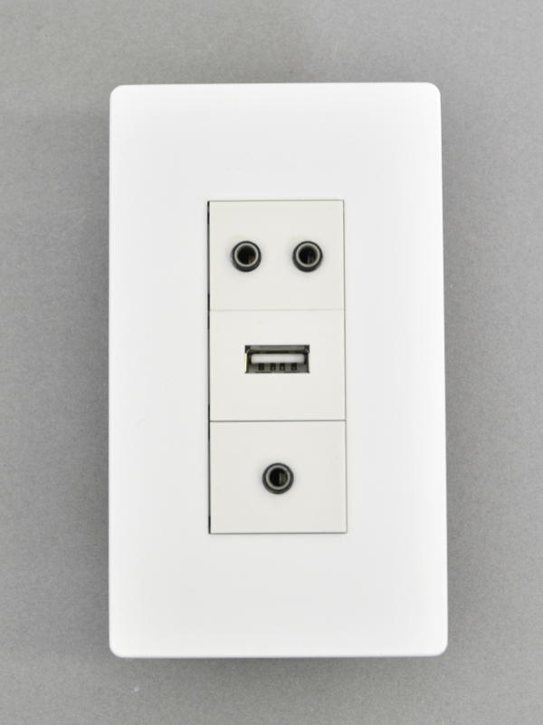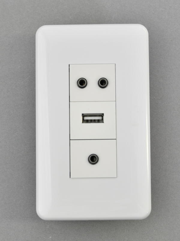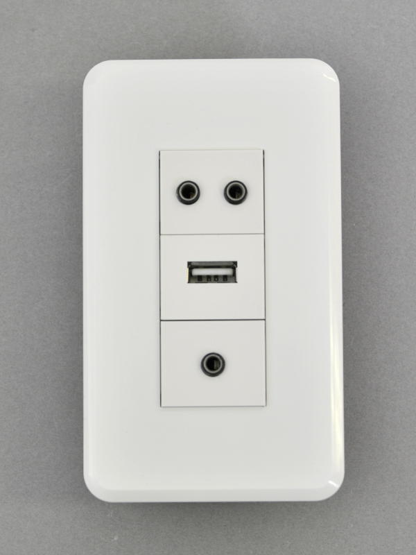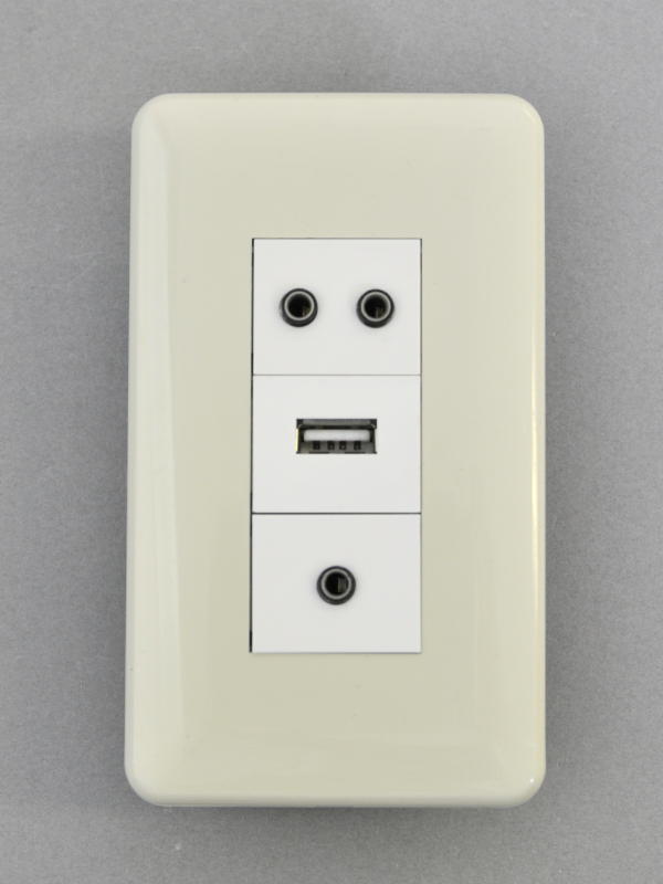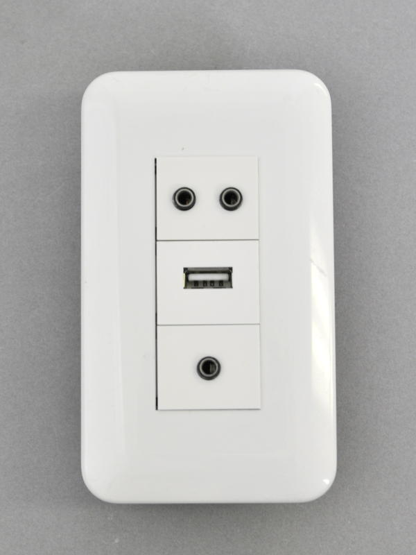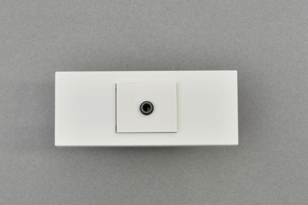 ●市販のコンセントプレートに取り付けることができるAV用のコンセントコネクタ部品で、3.5mmのステレオミニジャック(メス)を持ったコンセントチップです。