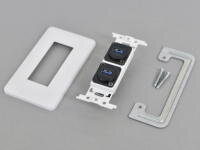 ●フルカラープレート(パナソニック製WN6003SW:ホワイト色)と取付枠一体型コンセントモジュール(CMW-2PNUSB3ACR-BK)をセットした商品です。取付に必要なコの字型ハサミ金具(パナソニック製WN39929)までセットにした商品です。