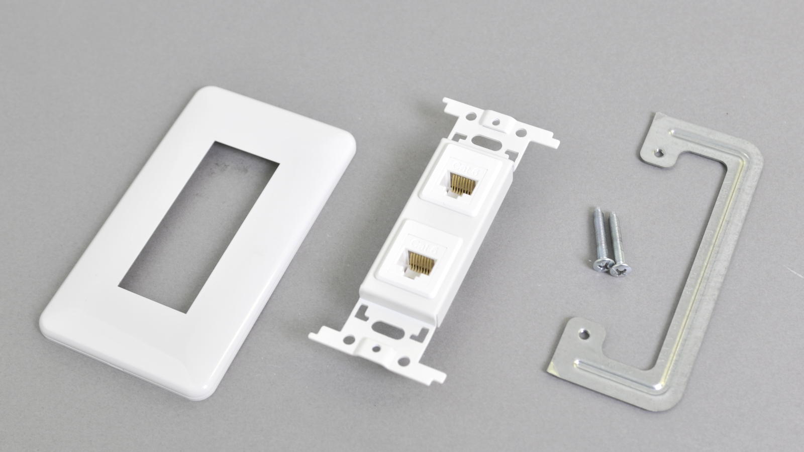 ●フルカラープレート(パナソニック製WN6003SW:ホワイト色)と取付枠一体型コンセントモジュール(CMW-2SIC6-WH)をセットした商品です。取付に必要なコの字型ハサミ金具(パナソニック製WN39929)までセットにした商品です。