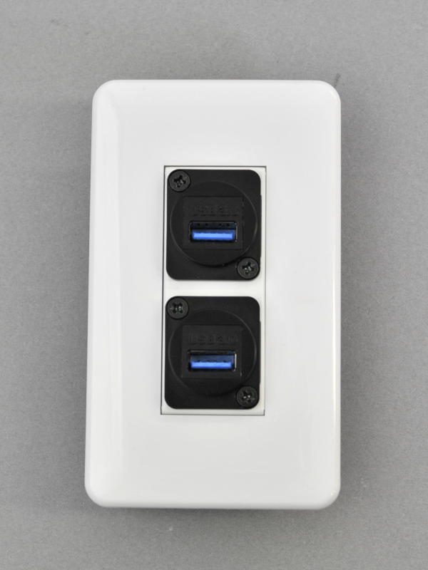 フルカラープレート付きAVコンセント USB 3.0 Type-A メス-メス【USB3.0対応】ストレート結線タイプ 2口