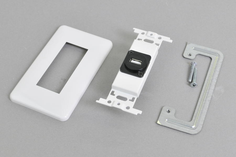 ●フルカラープレート(パナソニック製WN6003SW:ホワイト色)と取付枠一体型コンセントモジュール(CMW-PNUSBA-BK)をセットした商品です。取付に必要なコの字型ハサミ金具(パナソニック製WN39929)までセットにした商品です。