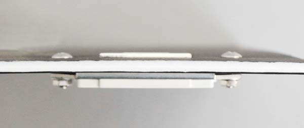 ●小型取付枠とガイドチップは非常に薄型の形状ですので、厚さの薄いパネルやスペースの無い場所への設置に適した商品です(ただし中継コネクタの長さと平面の配線スペースにはご注意ください。小型取付枠とガイドチップのみを取り付けた状態の厚さ方向の写真はこちら)。