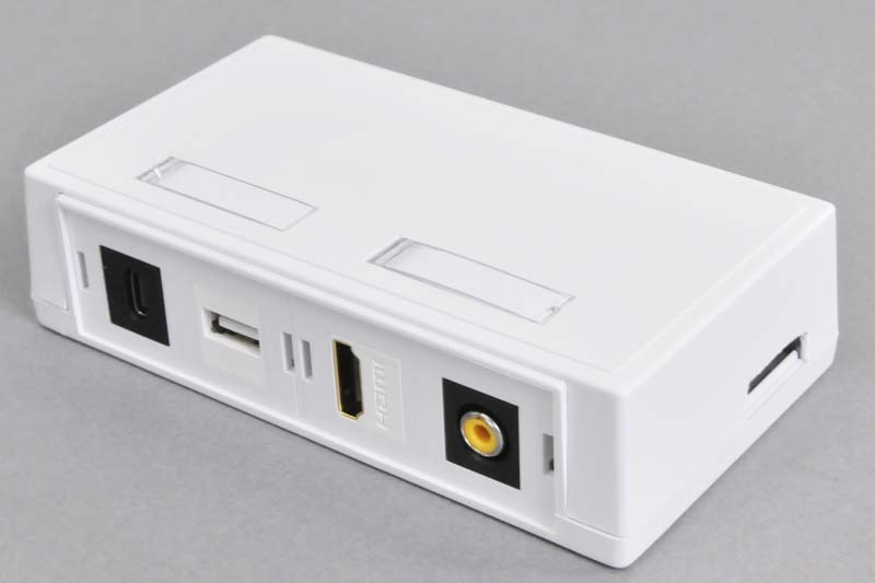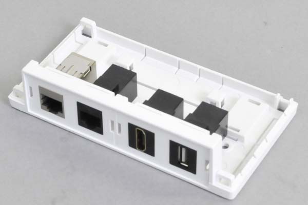 ●4個のスナップイン中継コネクタを取り付けることができる4口用の露出配線ボックスです。