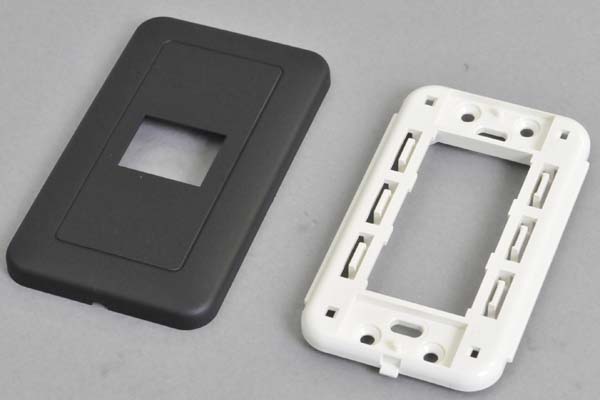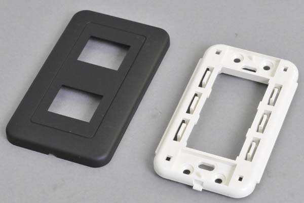 ●取付枠とフェースプレートの2部品構成の商品ですので、他のフェースプレートと異なり、コンセントチップやガイドチップを取り付けるための取付枠を別途ご用意いただく必要がありません。