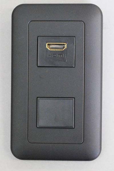 | HDMIコンセントチップ CC-SHDMI-BK-KVの取付例 | HDMIコンセントチップ CC-SHDMI-BK-KVとブランクチップ SY-NWT-BLK-BKの取付例 |