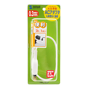 【サンワサプライ】 電源延長コード、2Pスイングプラグ、長さ0.3m、15A・125V(1500Wまで)【在庫限り販売中止】