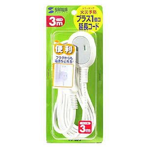 【サンワサプライ】 電源ケーブル(プラス1個口延長コード、15A・125V(合計1500Wまで)、コード長3m)【在庫限り販売中止】