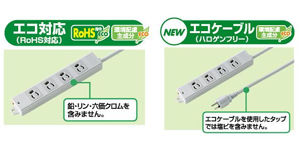 ●8個口(3P抜け止め)、エココード仕様、3Pプラグ(絶縁キャップ付き)のタップです。