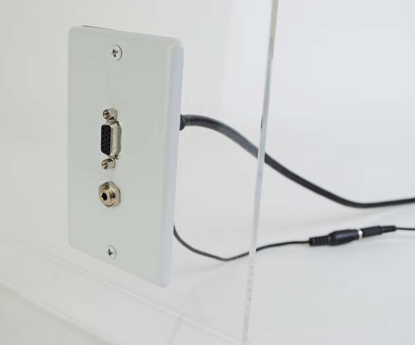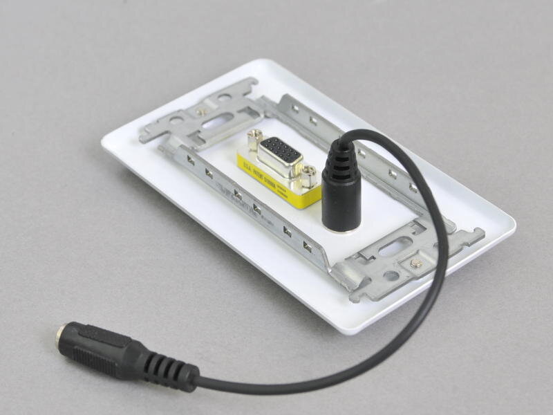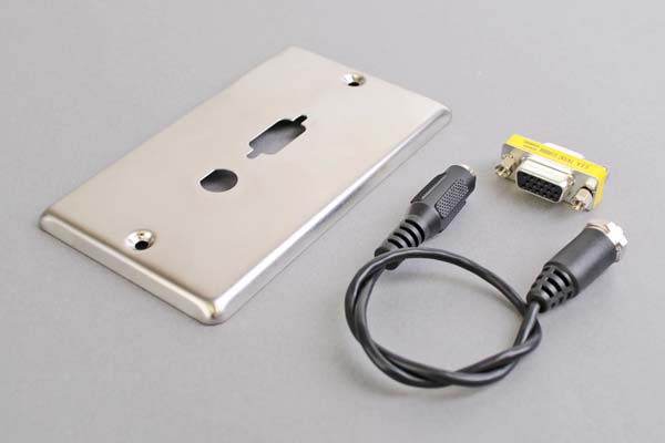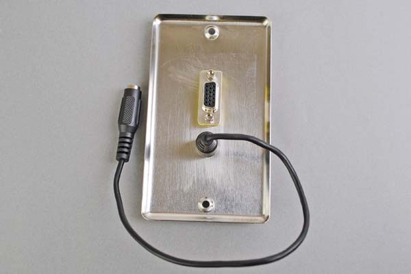 中継AVコンセント(無塗装銀色ステンレスプレート型、VGA映像+音声用、壁面埋込タイプ)【在庫限り販売中止】