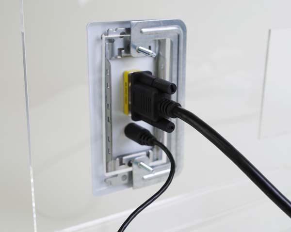 ●医療用映像機器やデジタルサイネージ(電子看板)、およびホームシアターなどの住宅内配線での施工用として、ビデオ信号やオーディオ信号を壁面配線する際に便利なAV機器専用のコンセントです。