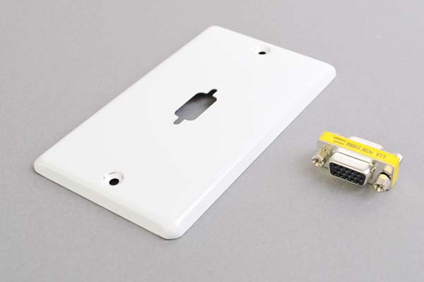 中継AVコンセント(白色塗装ステンレスプレート型、VGA映像用、壁面埋込タイプ)【在庫限り販売中止】