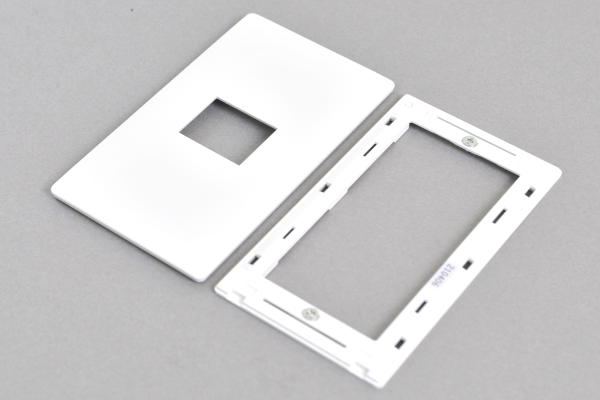 ●取付枠が1つ取り付けられる1連用のフェースプレートです(取付枠を取り付けた写真はこちら)。
