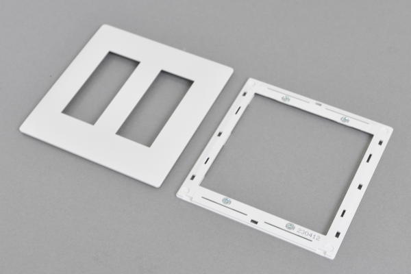 ●取付枠が2つ取り付けられる2連用のフェースプレートです(取付枠を取り付けた写真はこちら)。