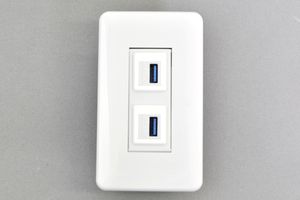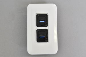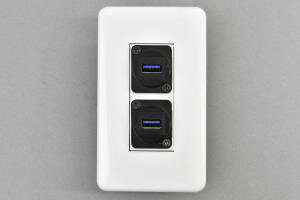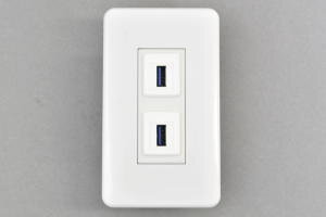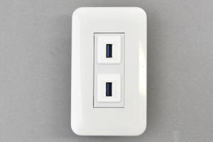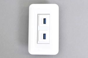 コスモプレート付きAVコンセント USB 3.0 Type-A メス-メス【USB3.0対応】クロス結線タイプ 2口●コスモプレート(WTF7003W)と絶縁取付枠用コンセントモジュール(BTK-2SIUSB3A-CR-WH)にコスモ絶縁取付枠(WTF3710K)をセットした商品です。取付に必要なコの字型ハサミ金具(WN39929)までセットにした商品です。 |