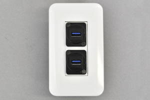 フルカラープレート付きAVコンセント USB 3.0 Type-A メス-メス【USB3.0対応】ストレート結線タイプ 1口●フルカラープレート(WN6003SW)と取付枠一体型コンセントモジュール(CMW-SIUSB3A-WH)をセットした商品です。取付に必要なコの字型ハサミ金具(WN39929)までセットにした商品です。 |