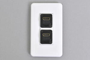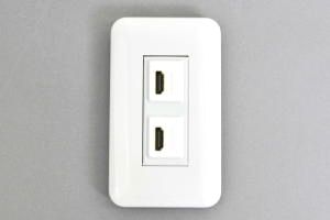 フルカラープレート付きAVコンセント HDMIメス-メス【HDMI2.0対応】 2口●フルカラープレート(WN6003SW)と取付枠一体型コンセントモジュール(CMW-2SIHDMI-WH)をセットした商品です。取付に必要なコの字型ハサミ金具(WN39929)までセットにした商品です。 |