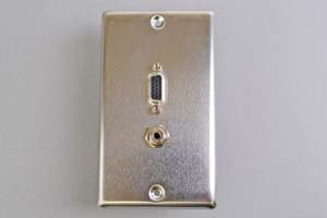 中継AVコンセント(無塗装銀色ステンレスプレート型、VGA映像+音声用、壁面埋込タイプ)【在庫限り販売中止】●ミニDsub15ピンのアナログRGB(VGA)映像信号と、3.5mmステレオミニプラグのアナログ音声を同時に中継配線できるコンセントプレート(AVコンセント)です。 |